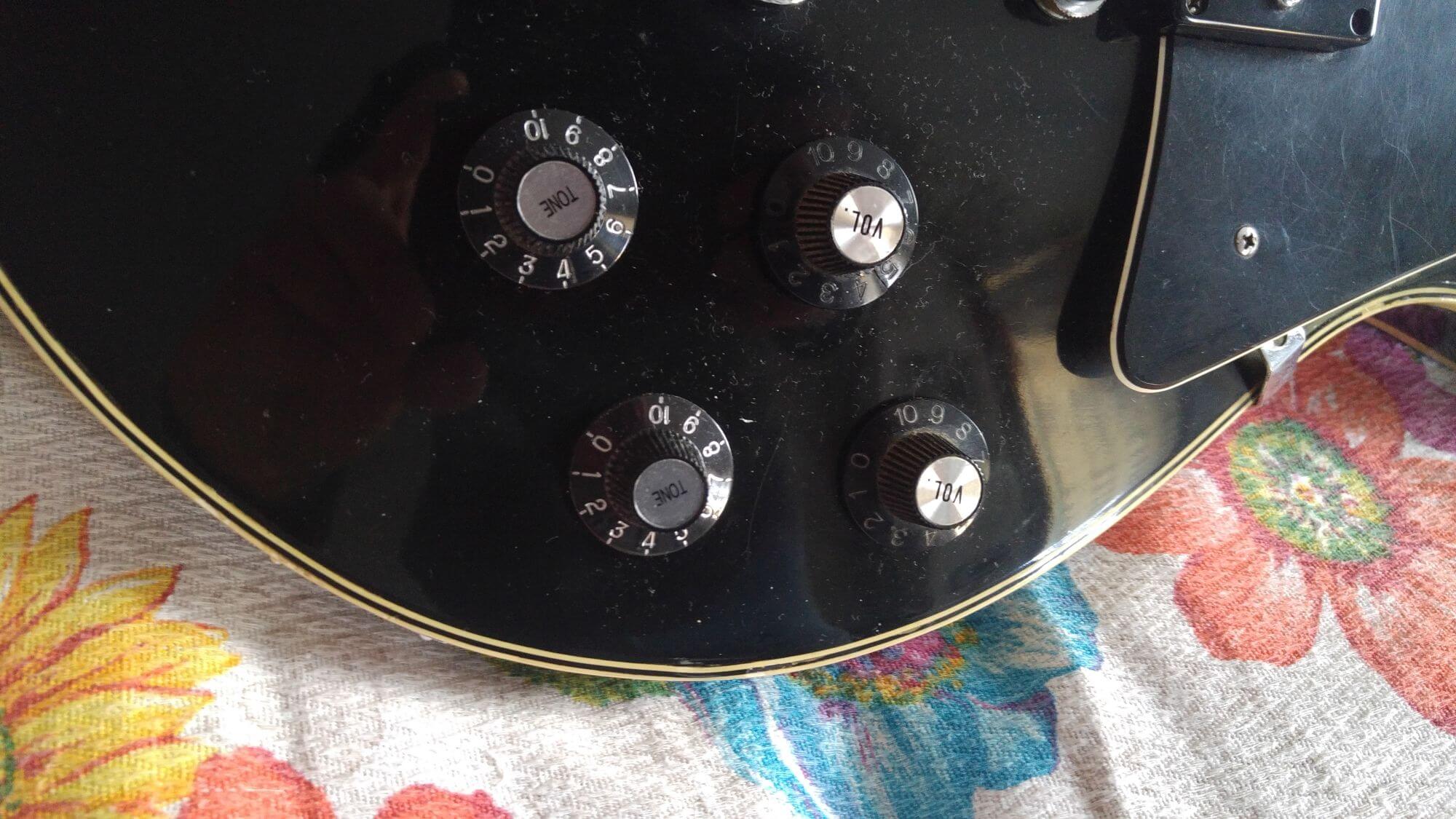 Come nelle classiche Les Paul, anche la Cimar No.1904 è composta da 4 manopole di regolazione e un interruttore a 3 vie. L’interruttore a 3 vie ha il compito di selezionare quale pickup far suonare mentre le 4 manopole permettono di regolarne i relativi toni e volumi.