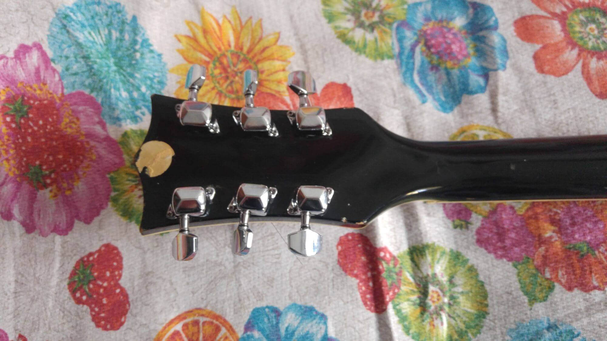 Le meccaniche sono cromate e non di plastica ma nonostante tutto sono il vero punto debole di questa chitarra. Va bene che la chitarra ha parecchi anni alle spalle ma le meccaniche sono state fatte veramente di materiale scadente per ridursi in questo stato. Presentavano infatti parecchio gioco e erano dure in alcuni punti della rotazione. Nonostante tutto l’accordatura manteneva abbastanza. In ogni caso è stato necessario sostituirle per migliorare la qualità complessiva della chitarra.